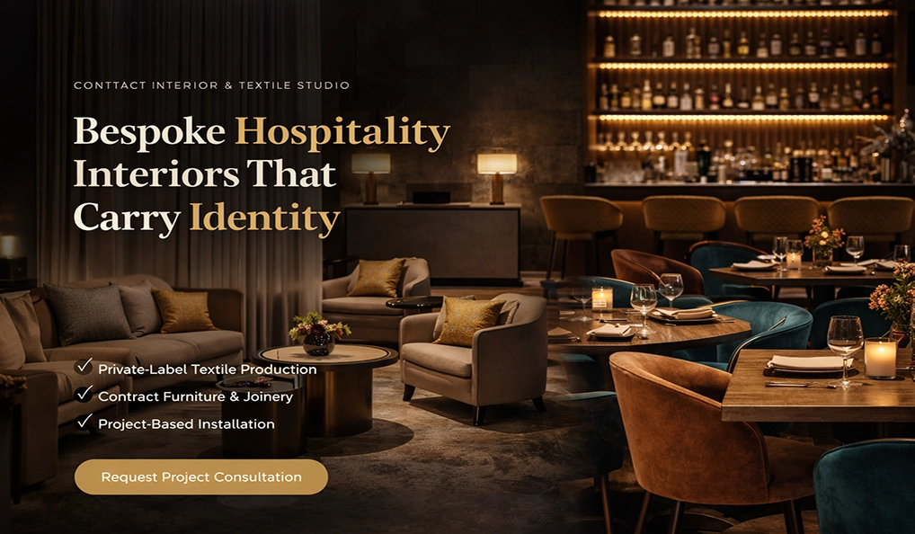 We design and manufacture custom branded textiles for hotels, restaurants, and hospitality spaces. Our solutions include curtains, upholstery fabrics, cushions, runners, and complete textile identity systems engineered for durability, fire compliance, and luxury presentation.Contract hospitality textiles