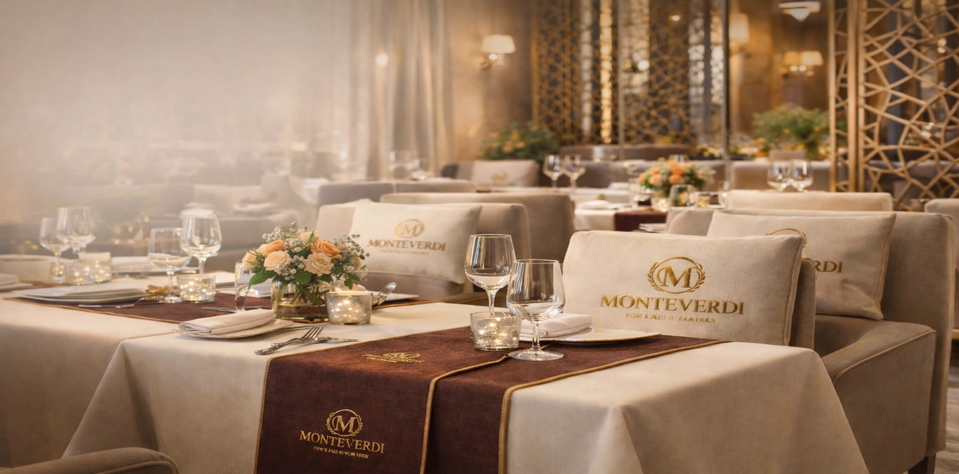 Bespoke restaurant and fine dining interior solutions combining custom furniture, branded textiles, and contract-grade installations tailored for hospitality environments.