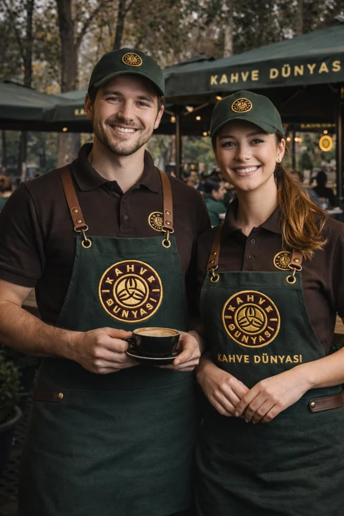 This project presents a bespoke textile branding concept developed for Kahve Dünyası Çatalca. The proposal integrates custom-designed tablecloths, branded runners, decorative cushions, customer shawls, and staff uniforms to create a cohesive and premium café experience.